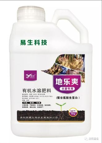 目前由于化肥施用不合理、土壤條件惡化等原因,近幾年在大姜的主產(chǎn)區(qū),姜瘟病、葉枯病、炭疽病及根結(jié)線蟲等發(fā)生日益嚴重,直接影響了產(chǎn)量,逼迫種植戶不規(guī)范地過量和過頻施用農(nóng)藥,形成惡性循環(huán)。要獲得大姜的持續(xù)高產(chǎn)穩(wěn)產(chǎn),可以使用吸收率高,且環(huán)保無污染的肥料,今天就給大家介紹一款有機水溶肥—地樂爽。