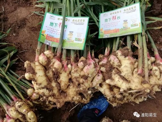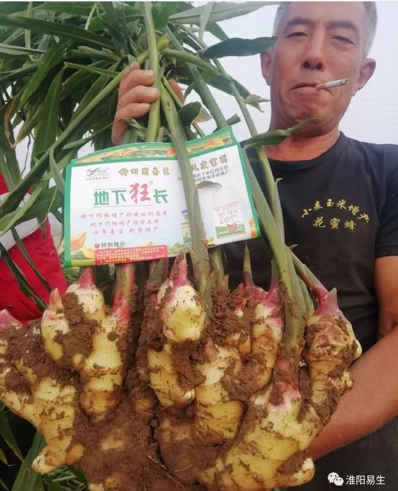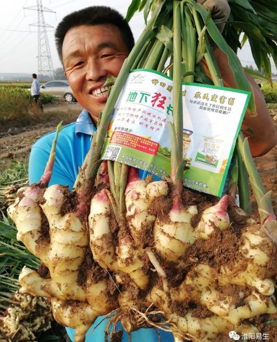 我們易生科技售后服務(wù)組人員開車在路上時(shí),農(nóng)戶大哥看到地下狂長的車,停下來讓看看他的大姜,今年噴施地下狂長六遍,今年的姜格外的胖、老氣!