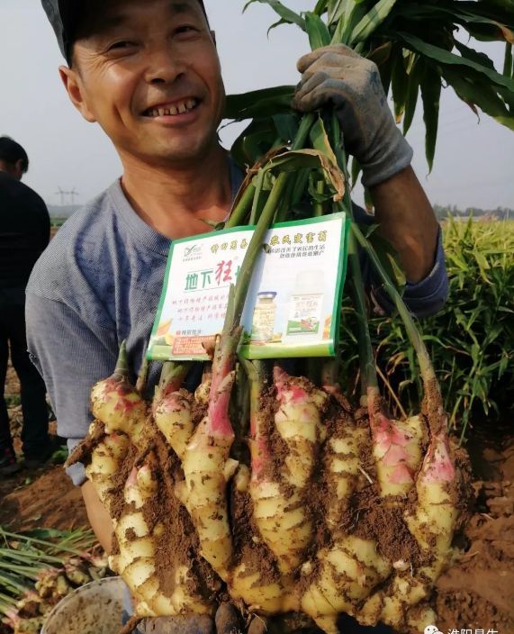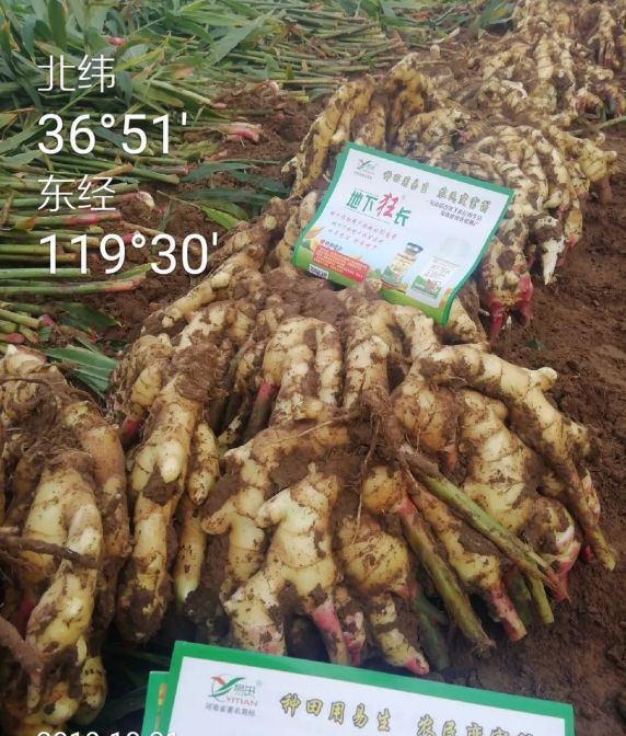 2019年10月20日,易生科技售后服務(wù)組來到昌邑,回訪這位農(nóng)戶,這位農(nóng)戶說噴施地下狂長了五遍,效果非常好,顏色金黃光亮,姜指頭粗胖,出姜時(shí)不易破盤,連接點(diǎn)粗。像這樣好的姜地里基本都是,還說今年的大姜比往年的都好。