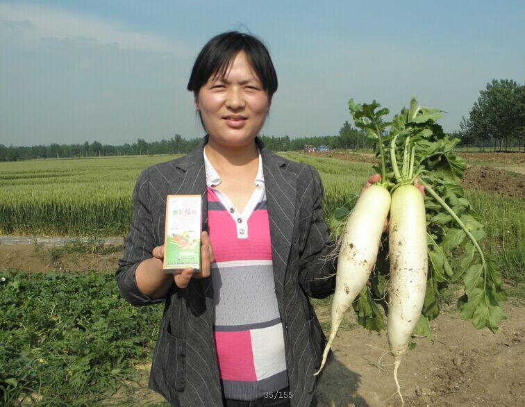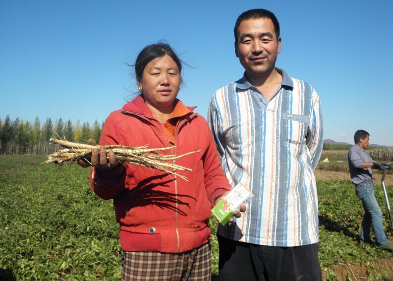 3月2日至6日,記者驅(qū)車數(shù)千里,在大蒜主產(chǎn)區(qū)山東金鄉(xiāng)、河南杞縣、中牟,花生主產(chǎn)區(qū)河南開封、正陽、內(nèi)黃、延津、民權(quán)等地采訪,所到之處,農(nóng)技部門極力推薦,農(nóng)民無不夸獎,易生科技“植物細胞裂變技術(shù)”之核心產(chǎn)品--“植物DNA激活酶”,被各地農(nóng)民稱贊為“地下狂長”、“地下狂銀”、“地下狂增”、“地下狂金”的地下四狂,被譽為易生科技地下四寶。短短三年的時間,已被廣泛應(yīng)用于地下塊莖、球莖、鱗莖等作物達千萬畝次,通過葉面噴施2-3遍均能達到抗病、抗旱、抗凍、改善品質(zhì)、增加產(chǎn)量20—30%以上,個別作物可增產(chǎn)30—50%。記者在采訪中聽到一位農(nóng)技人員隨口說出的一句順口溜:地下狂長噴三遍,一畝能收一畝半。是農(nóng)民對易生科技“植物細胞裂變技術(shù)”之核心產(chǎn)品--“植物DNA激活酶”神奇增產(chǎn)效果的總結(jié)和真實感言。農(nóng)民高興的對記者說:“植物DNA激活酶”是當(dāng)代農(nóng)民打開農(nóng)業(yè)地下經(jīng)濟黃金寶庫的金鑰匙,是引爆農(nóng)業(yè)根莖作物產(chǎn)量倍增的原子彈。