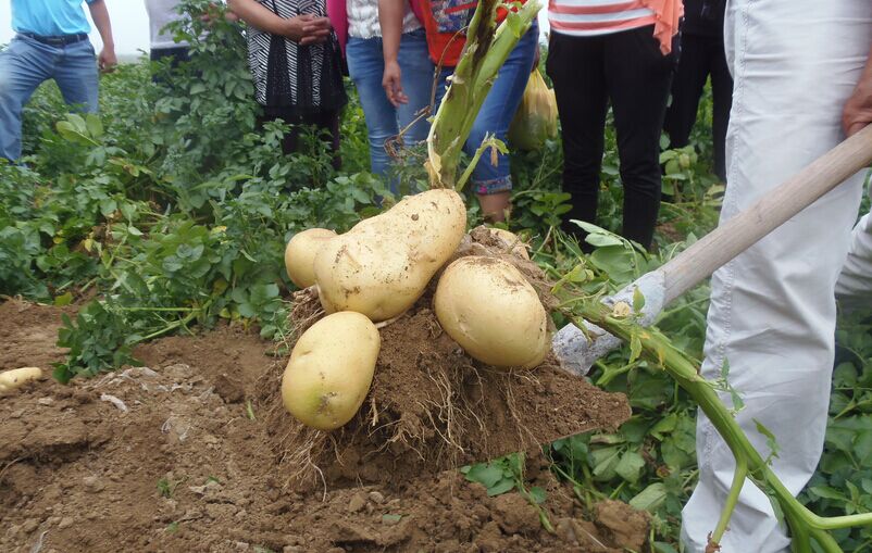 8;噴施地下狂長(zhǎng)第二遍10-15天后,再按第二遍的用量噴施一遍,一般增產(chǎn)30-40%以上,而且土豆色澤金黃光亮,品質(zhì)優(yōu)良特耐儲(chǔ)存,上品價(jià)值極高。